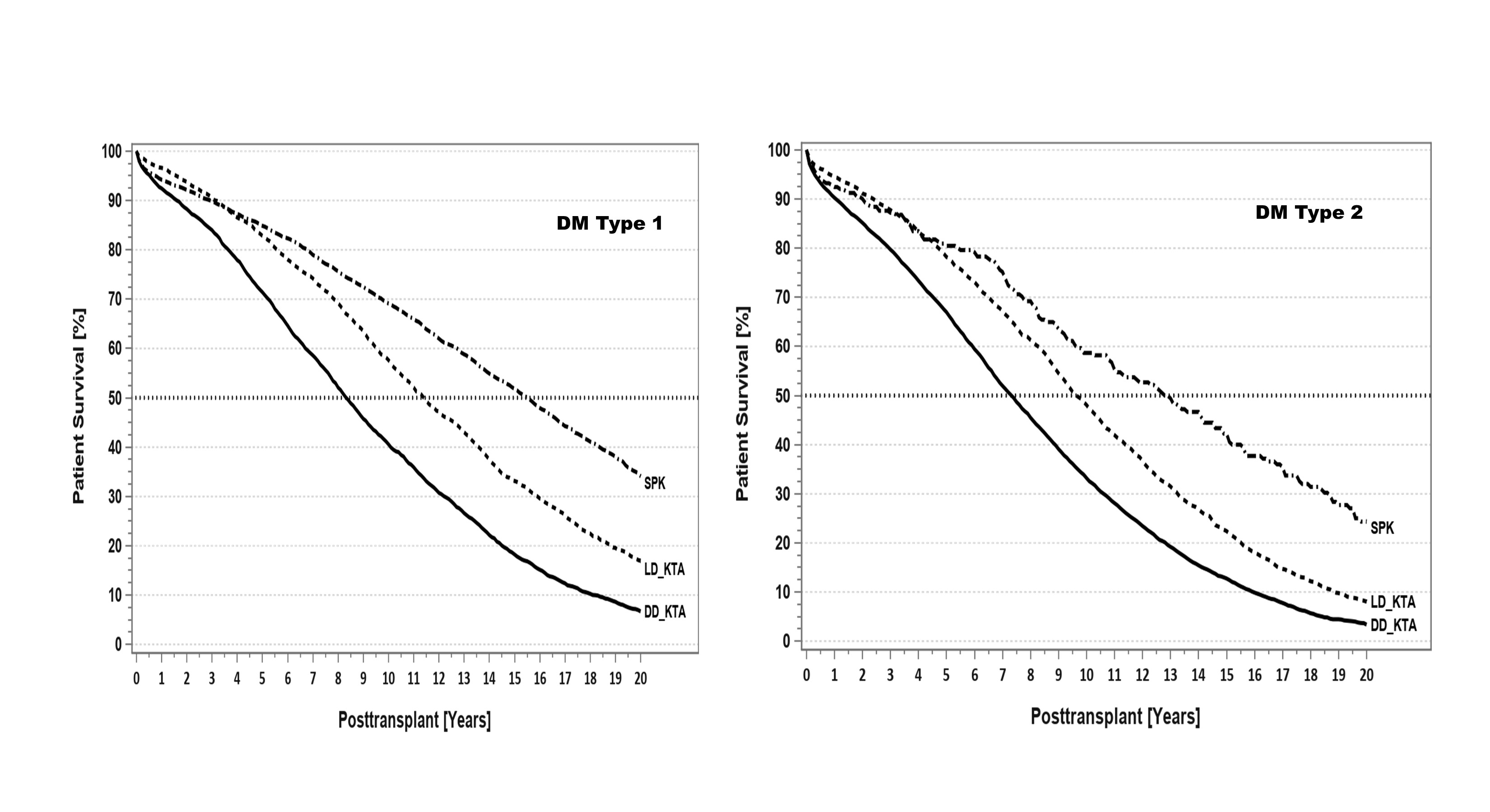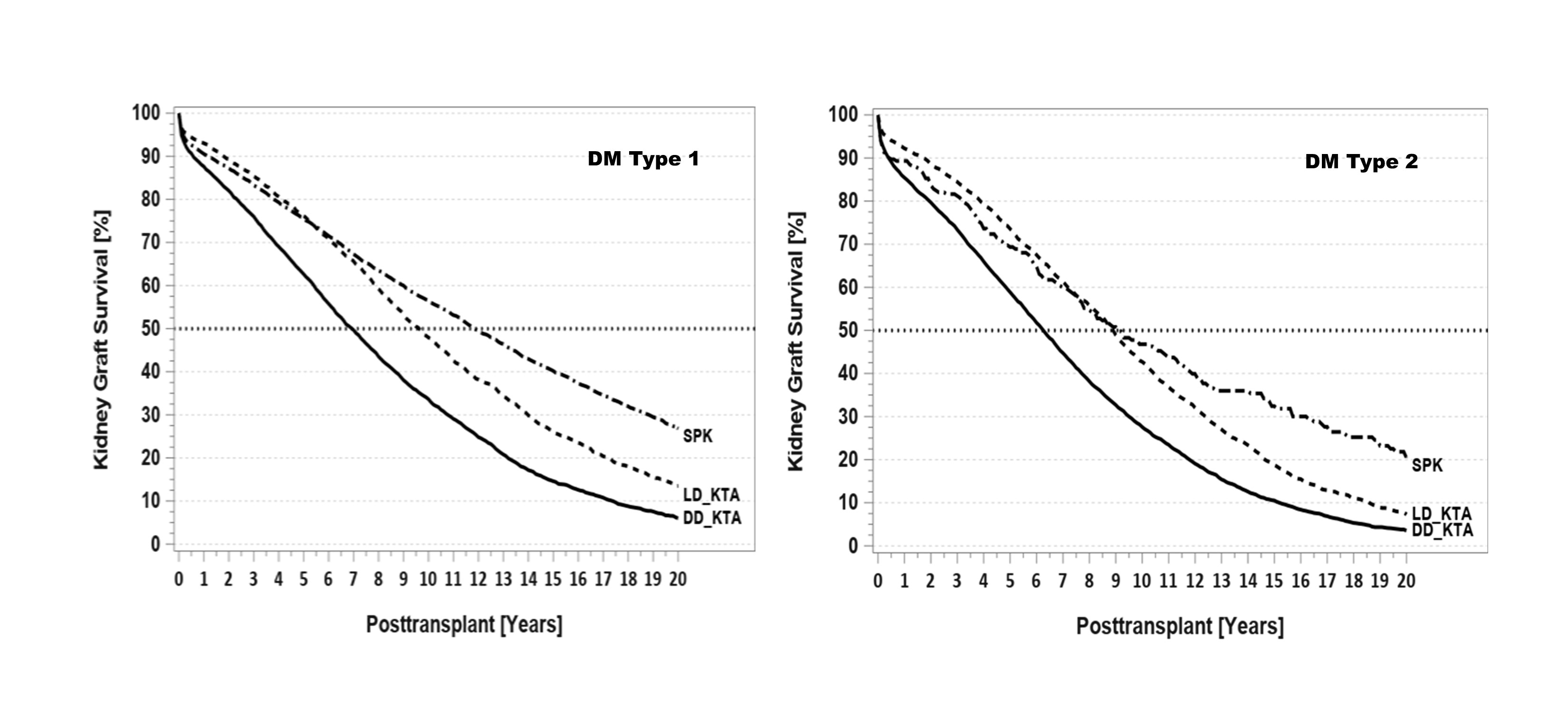 Materials: To assess long-term patient and kidney graft outcome, all 11,860 primary deceased donor (DD) and living donor (LD) KTA and SPK performed between 1994 and 2000 with a primary diagnosis of DM were included. Patients had at least 20-years of follow-up.
